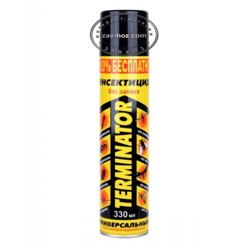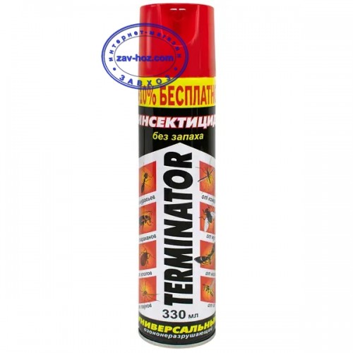 Инсектицидное средство дихлофос универсальный озононеразрушающий без запаха Терминатор 330 мл - позволит быстро и надолго избавиться от всех видов ползающих и летающих вредных насекомых. Применяют в домашнем хозяйстве для уничтожения комаров, мух, бабочек моли, ос, муравьев, тараканов, клопов, блох и пауков.