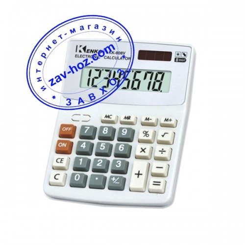 Настольный калькулятор используется в работе многих специалистов различных областей и сфер деятельности, чаще всего это бухгалтеры, экономисты, деловоды, офисные работники, продавцы и другие работники торговли. Также калькулятор помогает школьникам и студентам в освоении учебного материала, преимущественно в точных науках. Не лишним будет такое электронное счетное устройство и в домашнем хозяйстве, например, посчитать расходы и семейный бюджет на месяц, заполнить налоговую декларацию, и т.д. Калькулятор Kenko 808 относится к учетно-бухгалтерским калькуляторам, он имеет средние габариты и высокие удобные клавиши, которые подходят для скоростного ввода чисел при больших расчетах. Если Вам нужно суммировать огромное количество чисел, то делать это на таких клавишах намного удобнее, нежели на низких кнопках. Настольный калькулятор Kenko 990 не имеет расширенных функций, но обладает всем необходимым для арифметических вычислений и простых расчетов. В данной модели имеется клавиша, которая делает сброс последнего введенного числа (на случай ошибочного ввода), клавиши включения и отключения прибора, кнопка смены знака с плюса на минус, и в обратном порядке. С помощью этого калькулятора можно сделать расчет процентов, а также извлечь корень квадратный из числа. Для многоуровневых расчетов есть 1 ячейка памяти, калькулятор запомнит итог вычисления для того, чтобы вы могли использовать его в других расчетах. Число, которое останется в электронной памяти устройства, в дальнейшем можно прибавлять или вычитать, другие арифметические действия с ним не возможны. Прибор имеет жидкокристаллический дисплей с высоким разрешением, четкими большими цифрами и разрядностью 8 знаков. Работает калькулятор от батарейки и от солнечной энергии, это дает возможность экономить заряд батареи при эксплуатации прибора в дневное время.