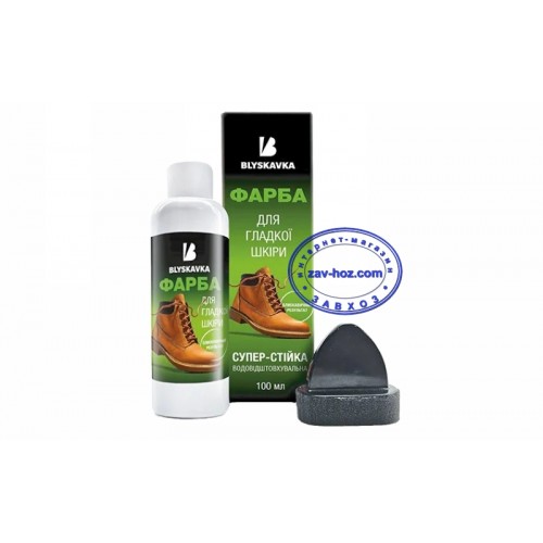 Блискавка —профессиональная краска для кожаных изделий, подходит для любого типа кожи. Интенсивно и глубоко прокрашивает изношенные места. Возобновляет цвет, защищает от влаги и соли, придает блеск, легко наносится, быстро впитывается, отменно полируется.